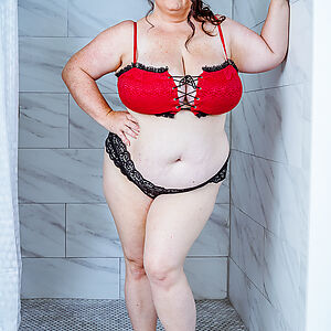BBW beauty Danica Danali enjoys a nice shower. Watch as the water perfectly frames her voluptuous body while leaving just enough for your imagination! If you're not that creative, fear not, because before you know it, this BBW dream is entirely nude, water pouring over her skin as she plays with her pussy.